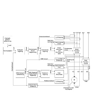Командная ступень (только в преобразователях для четырехквадрантного режима) действует совместно с контуром регулирования тока логического процесса всех необходимых для смены момента действий. При необходимости можно заблокировать через параметры также и направление момента.