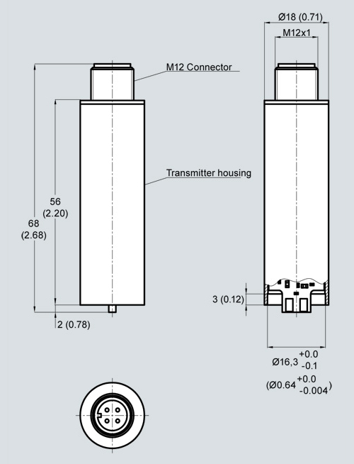 SITRANS TH100 SLIM, размеры в мм (дюймах) |