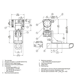 SITRANS P pressure transmitter for differential pressure and flow, P500 series, measurements in mm (inch) |