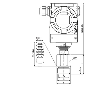 dM: Effective diaphragm diameter Miniature diaphragm seal, dimensions in mm (inch) |