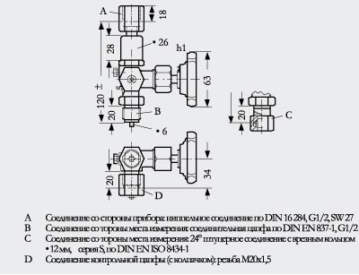 Shut-off valve, form B, dimension drawing, dimensions in mm Double shut-off valve, form B, dimensional drawing, dimensions in mm |