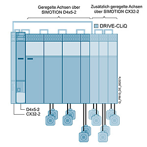 Пример: Группа из 12 осей с контроллером SIMOTION D4x5-2 и модулем расширения SIMOTION CX32-2