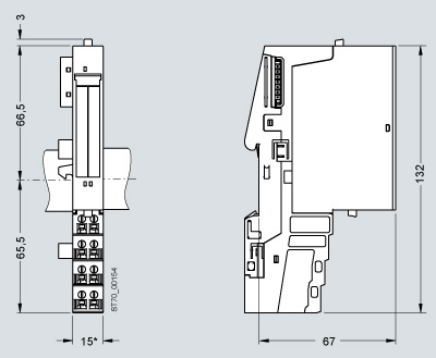Терминальный модуль (контакты под винт) с установленным модулем контроля питания