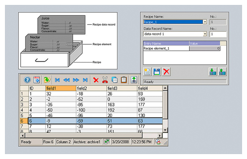 Опциональное программное обеспечение для SIMATIC WinCC Runtime Advanced и WinCC Runtime Professional для управления записями данных в рецептах соответствующих производственных машин и производственных данных.