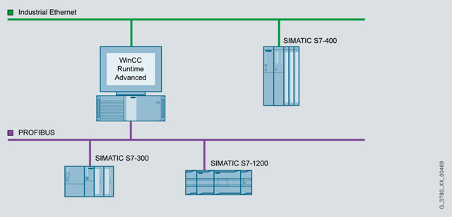 WinCC Advanced позволяет подключать параллельно до 8 контроллеров. Допускается подключение контроллеров других производителей.