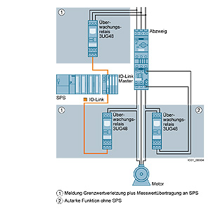 • Если реле контроля работают без контроллера, то 3UG48, имеющие интегрированный "режим SIO", работают с полупроводниковым выходом переключающим состояние при выходе контролируемого параметра за пределы