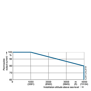 Доп. выходной ток в зависимости от высоты места установки для силовых модулей PM240 типоразмеры FSA до FSF