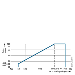 Силовые части могут работать на 500 В -10 %. В этом случае происходит соответствующее линейное снижение мощности.