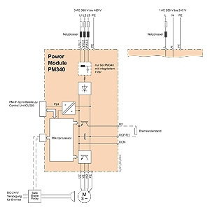 Силовой модуль PM340 типоразмера FSA с сетевым дросселем и сетевым фильтром