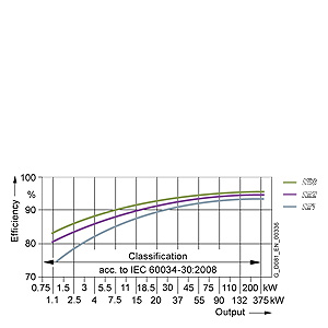 Стандартные двигатели Siemens отличаются особой гибкостью в применении, прочностью и энергоэффективнсотью. В основном все двигатели предназначены для работы с преобразовтелем с напряжением сети до 460 В +10 %. Двигатели сконструированы с учетом требований европейского и международного рынков с диапазоном мощности от 0.09 до 315 кВт. Стандартные двигатели для использования по всему мируIEC двигатели для европейского и мирового рынковСтандартные двигатели соответствуют действующим электрическим и механическим стандартам IEC/EN. Для экспорта в Китай могут быть предоставлены сертифицированные CCC (China Compulsory Certification) двигатели. IEC двигатели специально для североамериканского рынка Для экспорта в государства NAFTA (США, Канада и Мексика) доступны двигатели с спецификацией NEMA (National Electrical Manufacturers Association), с разрешением UL (Underwriters Laboratories Inc.) и сертификацией CSA (Canadian Standard Association). Механическая конструкция всех двигателей соответствует только размерам IEC/EN, но не NEMA. NEMA двигатели для североамериканского рынка Для получения дополнительной информации по NEMA двигателям в соответствии с NEMA стандартом MG1: http://www.sea.siemens.com/motors Высокоэфективные энергосберегающие двигатели для позитивного энергетического балансаВ зависимости от требований для позитивного энергетического баланса доступны энергосберегающие двигатели, которые соответствуют требованиям законодательства, применяемым в европейской экономической зоне в соответствии с директивой 640/2009,а также для североамериканского рынка всоответствии с федеральным законом EISA (Energy Independence Security Act). Минимальная эффективность с соответствии с ЕС директивой 640/2009Директива ЕС определяет минимальную эффективность для for 2, 4 и 6-полюсных двигателей в диапазоне мощностей от 0.75 до 375 кВт. Уровни эффективности сгруппированы в 3 класса эффективности (IE = International Efficiency):