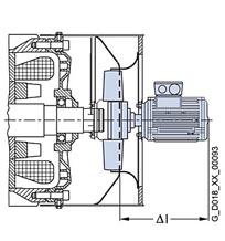 Explosion-proof separately driven fan The use of a separely driven fan is recommended to increase motor utilization at low speeds and to limit noise generation at speeds significantly higher than the synchronous speed. Both of these results can only be achieved with converter-fed operation. Please inquire about traction and vibratory operation. The separately driven fan can be supplied already mounted for the following zones: