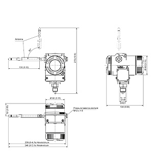 SITRANS P280 WirelessHART pressure transmitter, process connection G½", dimensions in mm (inch) SITRANS P280 WirelessHART pressure transmitter, process connection ½ - 14 NPT, dimensions in mm (inch) |