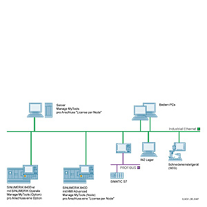 С системой управления SINUMERIK предполагается, что установлена стандартная опция управления инструментом. Система управления SINUMERIK без стандартных или без специального "станок-изготовитель" устройств управления может быть настроена как SIMATIC S7 или должна быть подключена непосредственно к проекту.