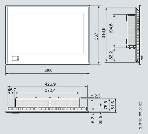 Все размеры в мм. Размеры инсталляционного отверстия приведены в технической спецификации. SIMATIC IPC477D 12" Touch device SIMATIC IPC477D 15" Touch device SIMATIC IPC477D 19" Touch device SIMATIC IPC477D 22" Touch device SIMATIC IPC477D 15" Touch/Key device |