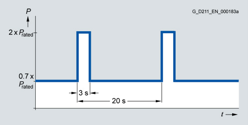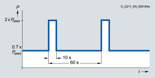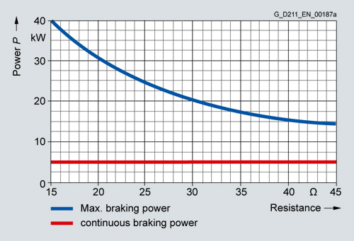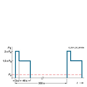 Перегрузочная способностьНагрузочный цикл с предыдущей нагрузкой Нагрузочный цикл с предыдущей нагрузкой S6 нагрузочный цикл с предыдущей нагрузкой Только 20 кВт и 40 кВт Basic Line Modules Нагрузочный цикл с предыдущей нагрузкой Тормозная мощность с внешним тормозным сопротивлениемОпределены следующие нагрузочные циклы для тормозных модулей Basic Line Modules 20 кВт и 40 кВт: Максимально возможная тормозная мощность Pмакс. рассчитывается, используя следующую формулу: P макс. = V2/R V = Порог включения R = Значение сопротивления внешнего тормозного резистора Максимальная тормозная мощность достигается при минимально возможных значениях сопротивлений. Максимальная тормозная мощность снижается при увеличении значения сопротивления.