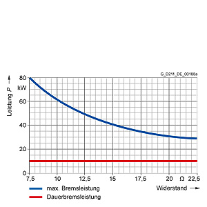 Тормозная мощность для 20 кВт Basic Line Modules зависит от подсоединенного тормозного сопротивления Когда используется рекомендованный тормозной резистор, получаются следующие значения для максимальной и длительной мощности торможения: Тормозной резистор 6SE7023-2ES87-2DC0