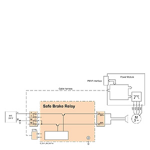 Схема подключения безопасного реле торможения Внешний ограничитель перенапряжения не требуется. |