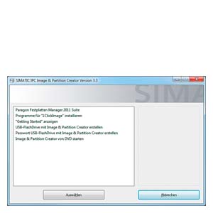 SIMATIC IPC Image & Partition Creator V3 - это программное обеспечение для быстрого и простого создания резервных копий и восстановления содержимого жестких дисков (образы отдельных разделов или всего жесткого диска). Это программное обеспечение может заказываться с помощью конфигуратора для SIMATIC PC или отдельно.