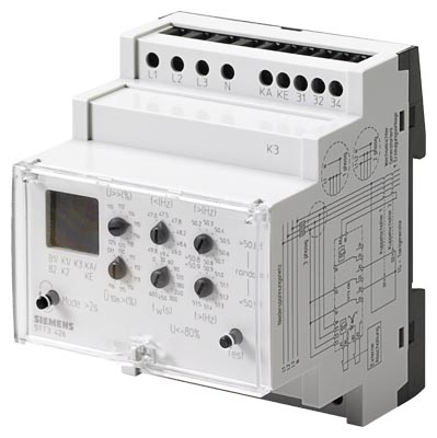 реле напряжения и частоты мониторит статус осн.системы в случае размещения во внутренней генерирующей системе. Нарушение превышения или занижения предельных результатов в срабатывании или разъединении генерирующих систем от осн.системы. Подключение или переподключение генерирующих систем к осн.системе происходит только когда частота и напряжение осн.системы остается в соответствии с допустимым диапазоном без прерывания на протяжении изменяемого времени задержки tW. Последующее отлючение вследствии краткого прерывания, переподключение имеет место когда частота и напряжение осн.системы остается неизменным на протяжении 5 с без прерывания.