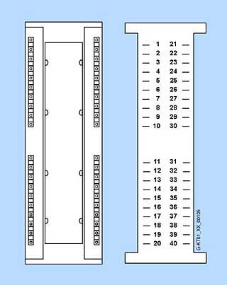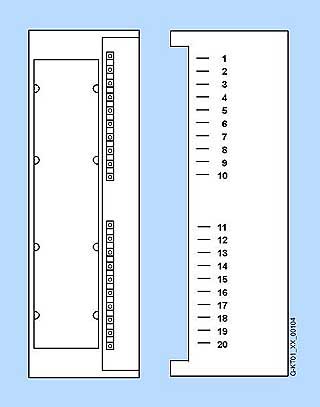 Соответствие между 40-контактным аналоговым штекерным модулем и клеммным блоком В таблице для 40-контактного аналогового штекерного модуля Вы видите соответствие гнезд клеммному блоку