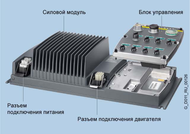 В случае децентрализованных преобразователей частоты SINAMICS G120D речь идет о модульном преобразователе частоты для стандартных приводов. Каждый SINAMICS G120D состоит из двух оперативных компонентов - управляющего модуля и силового модуля.