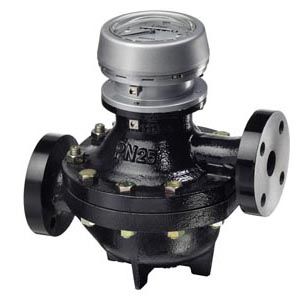 ? Error curves of rotary-piston metersThe shape of the error curve is also affected by the viscosity of the metered liquid. The error in measurement increases with decreasing viscosity, especially at the beginning and towards the end of the flow rate range. By appropriate regulation, i.e. changing a pair of gear-wheels between the meter mechanism and the register, the position of the error curve can be displaced parallel to the zero line and thus the meter can be optimally calibrated. The appropriate pair of replacement gears can be read off from a table or determined with the aid of a calculating disk. The illustration “Error curves of volumetric meters” shows error curves without any regulation having been carried out. Error curves of volumetric meters dependent in shape and location on the flow rate and the viscosity of the liquid Note: 1 mPa·s = 1 cp Measuring accuracyThe rotary-piston meters are approved in the European Community and in many other countries for the custody transfer. The following error limits apply between 0.2 % and 0.5 % of the correct value (depending on the liquid, the measuring range and the relevant calibration specifications). The stated error limits in % of the correct value apply to the whole flow rate and for any delivery quantity greater than the smallest permissible quantity. This is an important difference compared to other measuring instruments whose errors are related to the full-scale value and thus only reach the stated accuracy at one point - full-scale deflection. The minimum flow rate should not fall below 10 % of the maximum flow rate in order to remain within the stated accuracy limit. This explains why the usual flow rate range for volumetric meters is 1:10. Note: The measuring system of the rotary-piston meter must always be filled with the liquid to be measured in order to achieve a high measuring accuracy. NoteThe material combinations which can be supplied are listed in the Selection and Ordering data. Service life (long-term accuracy)The service life of a volumetric meter, i.e. the operating time until an overhaul or recalibration becomes necessary, is determined by the mechanical abrasion of the moving parts of the mechanisms which occurs because of forces from the metered liquid. As well as the nature of the materials used (running characteristics), the service life is dependent on the lubricating properties of the metered liquid, the service is dependent on the lubricating properties of the metered liquid, the daily operating time and the cube of the flow rate (speed of rotation). The last factor is one of the reasons why only half of the maximum flow rate specified for the batch operation is permissible for continuous operation. Since the above factors can hardly be determined exactly with industrial use of the meter, unequivocal statements on the service life (long-term accuracy) are not possible. Recalibration is required every two years by law (in Germany) for meters used for custody transfer. On the basis of this regulation, it is recommended that meters which are not used for custody transfer be checked and recalibrated if necessary, at intervals of two to three years. Even this recommendation is based on average, “normal” operating conditions. A period of three years is too short, for example, for a meter used for the batch dispensing of lubricating oil, it will still work within the stated error limits even after five years or more. Rotary piston meters - Configurations