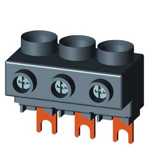 ? Изолированные 3-х фазные шинки ввода электропитанияИзолированные 3-х фазные шинки позволяют быстро и легко организовать ввод электропитания для автоматических выключателей 3RV2 с винтовыми зажимами. Они могут применяться для автоматических выключателей до 32А. Системы 3-х фазных шинок 3RV19 15 неприменимы для автоматических выключателей защиты электродвигателей с функцией реле перегрузки 3RV21, а так же для автоматических выключателей 3RV27 и 3RV28 в соотв. с UL 489 / CSA C22.2 No.5-02. Имеются исполнения шинок для запитывания от 2 до 5 автоматических выключателей. Количество запитываемых аппаратов может быть увеличено при помощи использования дополнительных модулей. Возможно комбинировать аппараты разных типоразмеров. Зажимы аппаратов должны соответствовать клеммам шинок. Система 3-х фазных шинок электропитания автоматических выключателей 3RV2 типоразмеров S00/S0 3-х фазные шинки имеют степень защиты от прикосновения пальцами. Они рассчитаны на воздействие тока короткого замыкания в случае возникновения КЗ на стороне нагрузки.