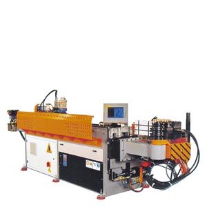 ? Требования к машинеПри гибке труб деформируется круглый материал (труба, стержень, проволока, кабель и т. д.) с помощью подвижной Программы гиба часто создаются с помощью специальных программ на персональном компьютере. Соответствующая программа гиба, состоящая из позиций, угла, скорости и давления выбирается на панели оператора и загружается в контроллер. Гибочная машина типично имеет 3-5 осей позиционирования, которые выполняются абсолютными и электрическими, оси для больших диаметров трубы часто бывают гидравлическими. Труба вставляется вручную до ограничителя в зажимной патрон оси вращения. Со стартом происходит гидравлический зажим и блок транспортировки перемещает трубу до первой точки гиба. Далее происходит гидравлическая подача направляющих планок или колодок (зажим). Прижимное усилие устанавливается в зависимости от материала трубы. Далее головка поворачивается на определенный угол и делается первая дуга. При этом гибочная ось перемещает трубу автоматически в направлении Y или в режиме слежения или позиционируется по кулачку. Радиус изгиба определяется гибочным роликом (инструментом) и фиксирован. Затем направляющие планки разжимаются, труба позиционируется в следующей точке гиба и при этом при необходимости поворачивается. Таким образом создаются трехмерные фигуры. Различные радиусы формируются разными матрицами, установленными на разных высотах т.н. «многошаблонной матрицы». Для этого труба перемещается транспортным блоком в направлении X из первого профиля, затем позиционируется в направлении Z на следующем шаблоне и в направлении X снова подается в шаблон прежде чем переместиться на следующую позицию гиба. Тогда происходят снова зажим направляющих планок и изгиб трубы. Эти процессы повторяются по программе гиба до ее окончания и труба вынимается из установки вручную. Чтобы достигать по возможности более короткого времени гиба и воспроизводимого качества, необходимо по-разному Для решения этих задач имеются следующие функции Motion Control системы SIMOTION: