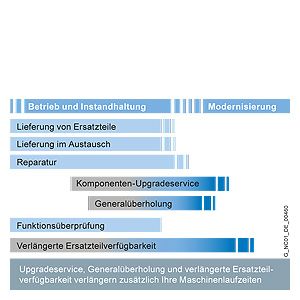 ? Spare parts services during the lifecycle Siemens also provides constant support to customers after delivery of the machines or plant. This includes spare parts, repairs, as well as other supplementary services, and has a positive effect on machine operating times, inventories and costs. When customers purchase a high-quality machine or plant, they intend to use it as intensively as possible, preferably for three shifts a day over many years. Under such circumstances, it is normal for parts to fail eventually. It is essential to replace the part as quickly as possible, because every hour of a plant stoppage costs money. To satisfy the multi-faceted requirements in the different areas, we have created comprehensive spare parts services. You can sign up for the spare parts service that suits your requirements perfectly: