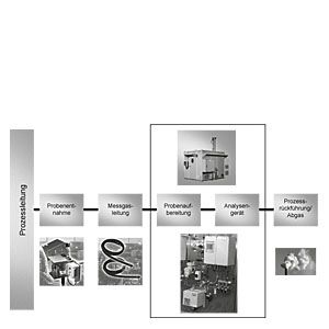 ?При экстрактивных процедурах измерения, анализируемая проба извлекается из технологической линии и, предварительно подготовленная, подается на анализатор через линию пробы и систему пробоподготовки. Эта система, например, регулирует давление, температуру и поток пробы, и при необходимости освобождает газ пробы от пыли и влаги. Это гарантирует выполнение измерений при определенных условиях. Более того, анализатор защищается от повреждающих воздействий. , анализируемая проба извлекается из технологической линии и, предварительно подготовленная, подается на анализатор через линию пробы и систему пробоподготовки. Эта система, например, регулирует давление, температуру и поток пробы, и при необходимости освобождает газ пробы от пыли и влаги. Это гарантирует выполнение измерений при определенных условиях. Более того, анализатор защищается от повреждающих воздействий.