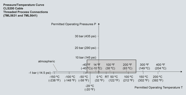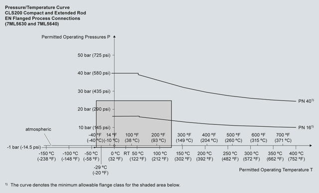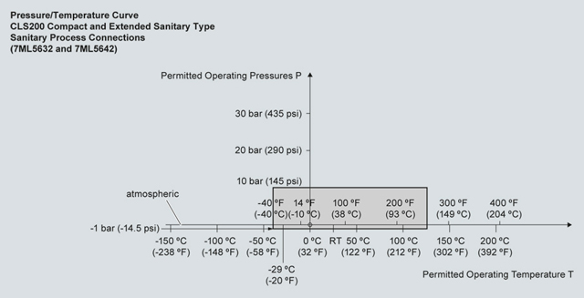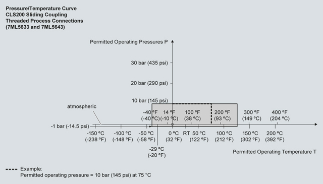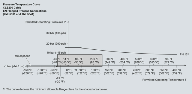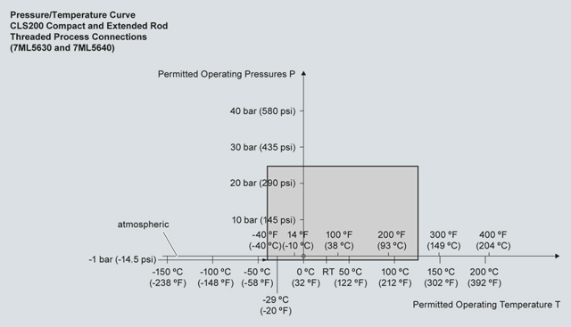 Кривые снижения рабочих параметров давление/температура процесса для Pointek CLS200 (7ML5504)