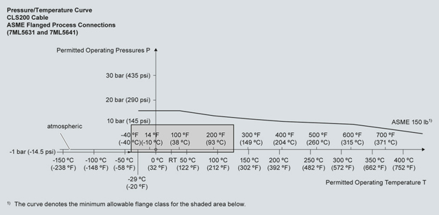 Кривые снижения рабочих параметров давление/температура процесса для Pointek CLS200 (7ML5502)