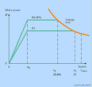 Диаграмма показывает типичное отношение скорости двигателя к мощности привода для двигателей 1PM4 в следующих типах режимов работы (согласно IEC 60034-1):