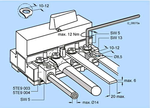 Присоединение 5TE1 .3 и 5TE1 .4 выключателей, 160 A и 200