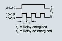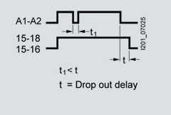 Функции RV, IF, AW, AV/RV запускаются через управляющий вход B1 (+) потенциалом по отношению к зажиму A2. Для этого может быть использовано как вспомогательное напряжение зажима A1, так и любое другое напряжение из диапазона AC/DC 12 ... 240 В. При этом подключение параллельной нагрузки (например, контакторов) между B1 (+) и A2 также допускается. Если при выполнении функции IF к управляющему входу B1 (+) и зажиму A1 будет одновременно подано напряжение, то генерируется выходной импульс с установленной продолжительностью времени t1.