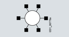 При звездообразном расположении все пользователи соединены с центральным пунктом, который также работает как блок управления системой. Он передает данные дальше каждому из пользователей, кому эта информация была адресована. Эта структура сети позволяет многоканальный режим работы, при котором многие связи могут функционировать одновременно. Дальнейшие пользователи при необходимости могут просто подключаться к центральному пункту.