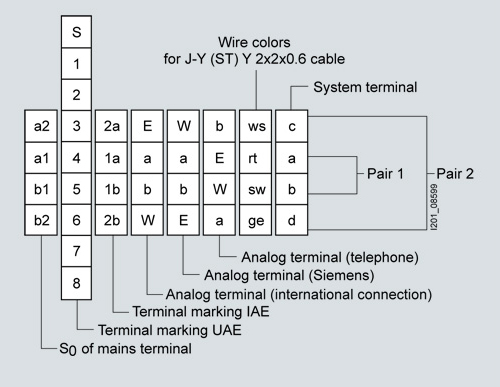 Маркировка жил для аналоговых телефонов и телефонов ISDN