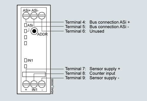 Модуль работает в режиме суммирующего счета в диапазоне от 0 до 15. После завершения текущего цикла начинается очередной цикл с отсчетом от 0. Содержимое счетчика может считываться ведущим сетевым устройством (младший разряд D0, старший разряд D3). Ведущее сетевое устройство осуществляет предварительную установку счетчика и определяет количество импульсов до следующего запроса. Это количество не должно превышать 15.