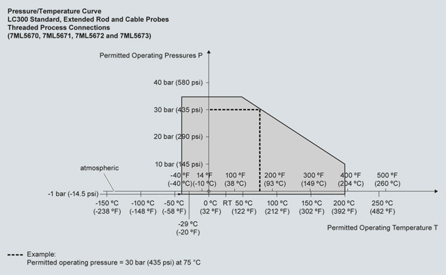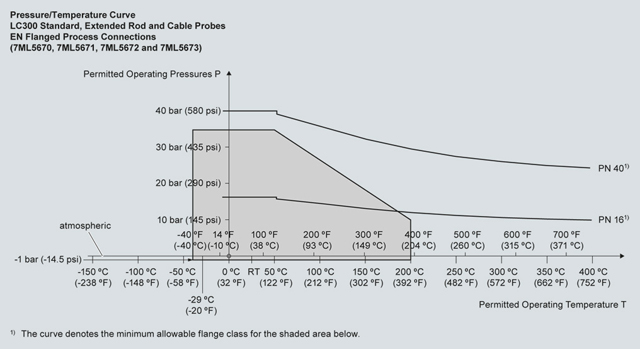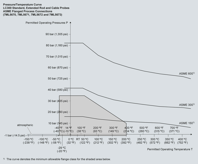 SITRANS LC300 Кривые снижения рабочих параметров давления/температура (7ML5625)