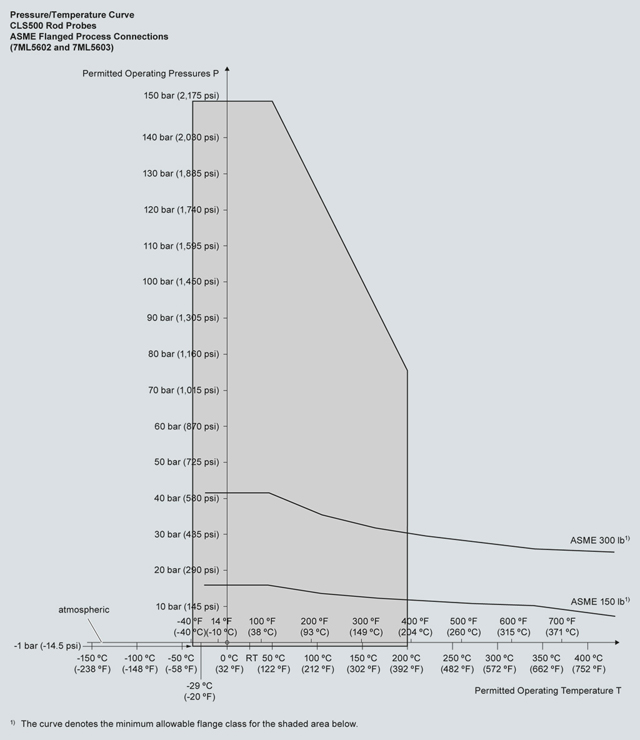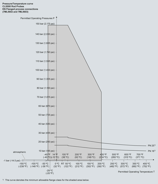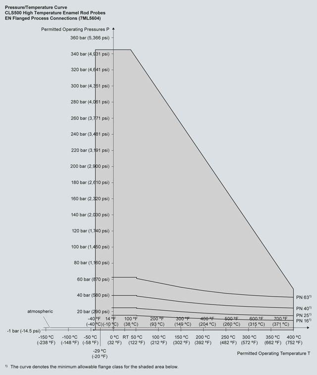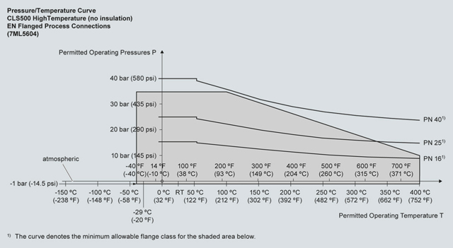 Pointek CLS500 Кривые снижения рабочих параметров давления/температура (7ML5604)