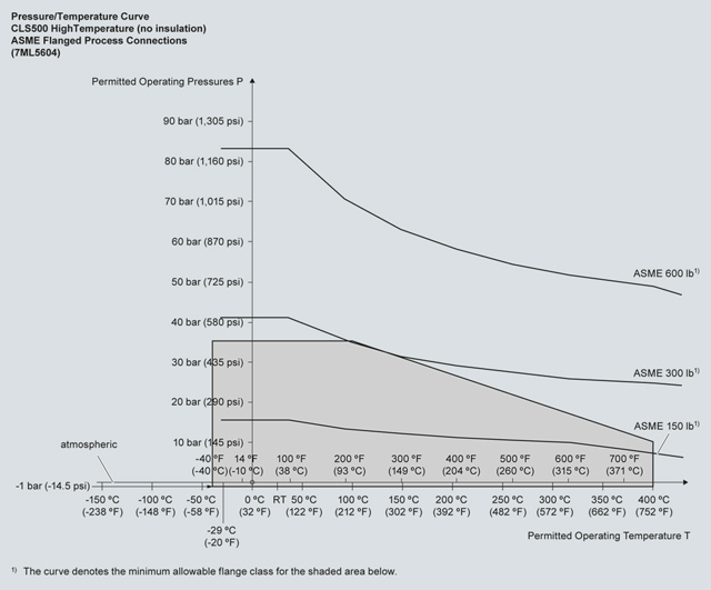 Pointek CLS500 Кривые снижения рабочих параметров давления/температура (7ML5602 и 7ML5603)