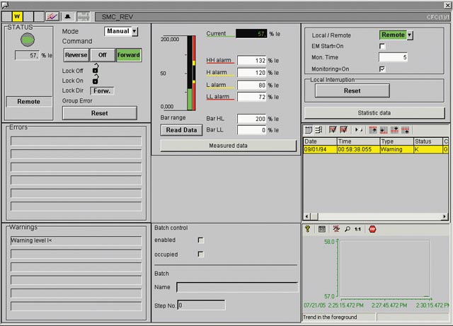 Функциональный блок SIMOCODE DP содержит диагностическую информацию, в том числе и аварийные сообщения, а также набор драйверов и графический образ, требуемые для управления со станции оператора и мониторинга за технологическими параметрами. Параметры блока настраиваются при помощи CFC редактора.