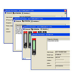 - Подробная диагностическая информация о DP ведомых устройствах, включая статус модуля, заказной номер, код идентификатора