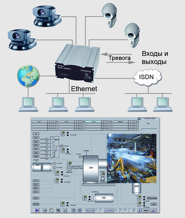 Для этих целей походящим решением является использование видео web сервера SIVICON, например, для мониторинга за заводскими участками, удаленной диагностики, что позволяет достигать высокого качества продукции при снижении промышленных простоев. В зависимости от наступившего события при соответствующей квалификации оперативного и сервисного персонала, последнее может быть обнаружено очень быстро.