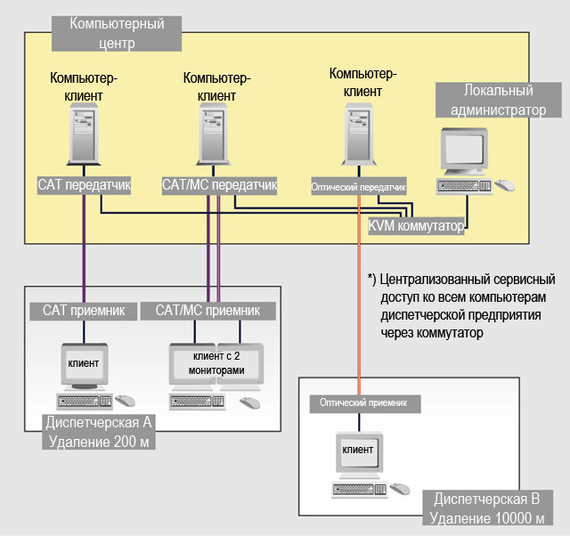 CATVision and LwLVision передают сигналы от клавиатуры, видео, манипулятора типа "мышь", аудио и RS 232 через различные среды. Поскольку CATVision с CAT5-, CAT6- or CAT7-кабелем можно соединять с мостом на расстояние до 200м в зависимости от разрешения, LwLVision позволяет передавать сигналы через оптический кабель на расстояние до 10,000 м.