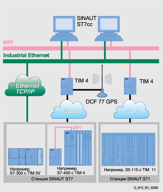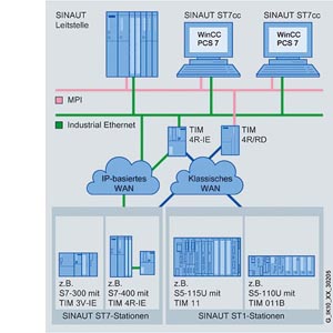 Дополнительно SINAUT ST7cc поддерживает функции центра телеуправления, что исключает необходимость выделения для этих целей отдельного центрального процессора SIMATIC S7/C7.