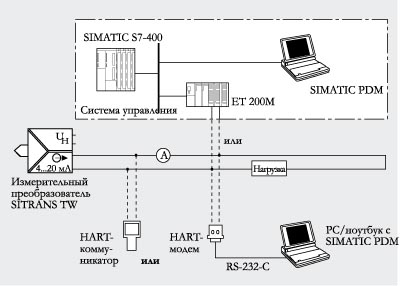 - HART-совместимой системой управления (например SIMATIC S7-400 с ET 200M)
