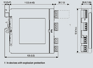 Размеры для монтажа, крепеж на несущую шину, в мм (дюймах)