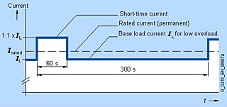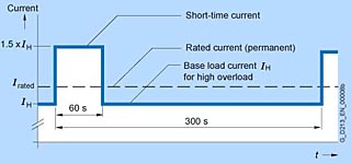 Критерий для расчёта перегрузки - это работа на базовом токе до и после перегрузки и предполагается, что длительность перегрузки