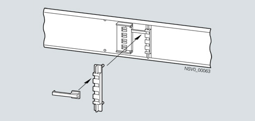 Как только выбрана точка крепления, скобка крепежного кронштейна вставляется в фиксатор прямой секции.